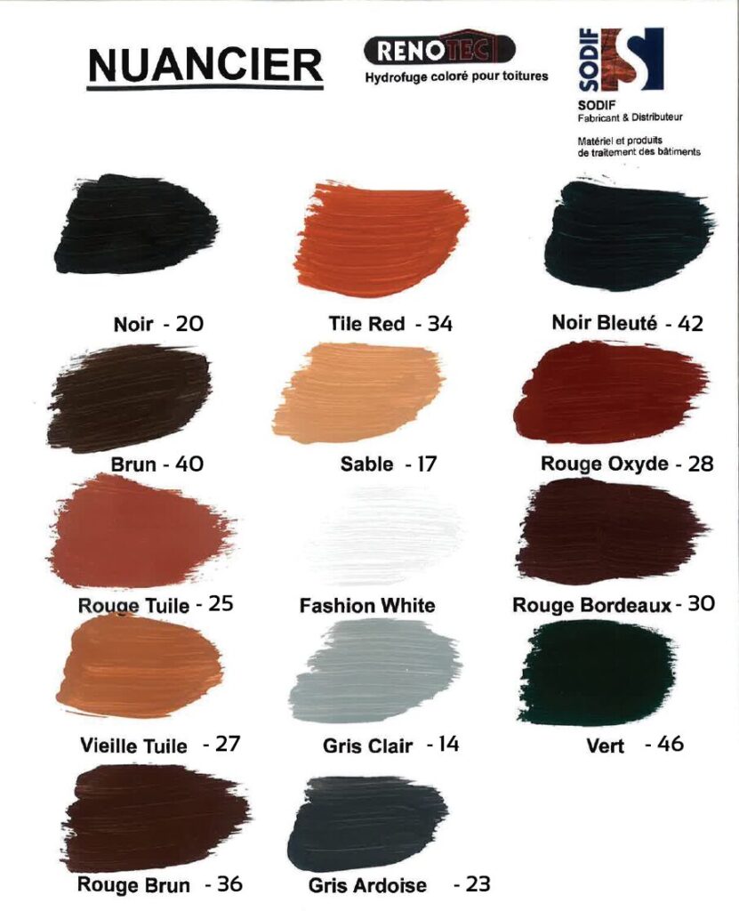 Nuancier des coloris d’hydrofuge disponibles