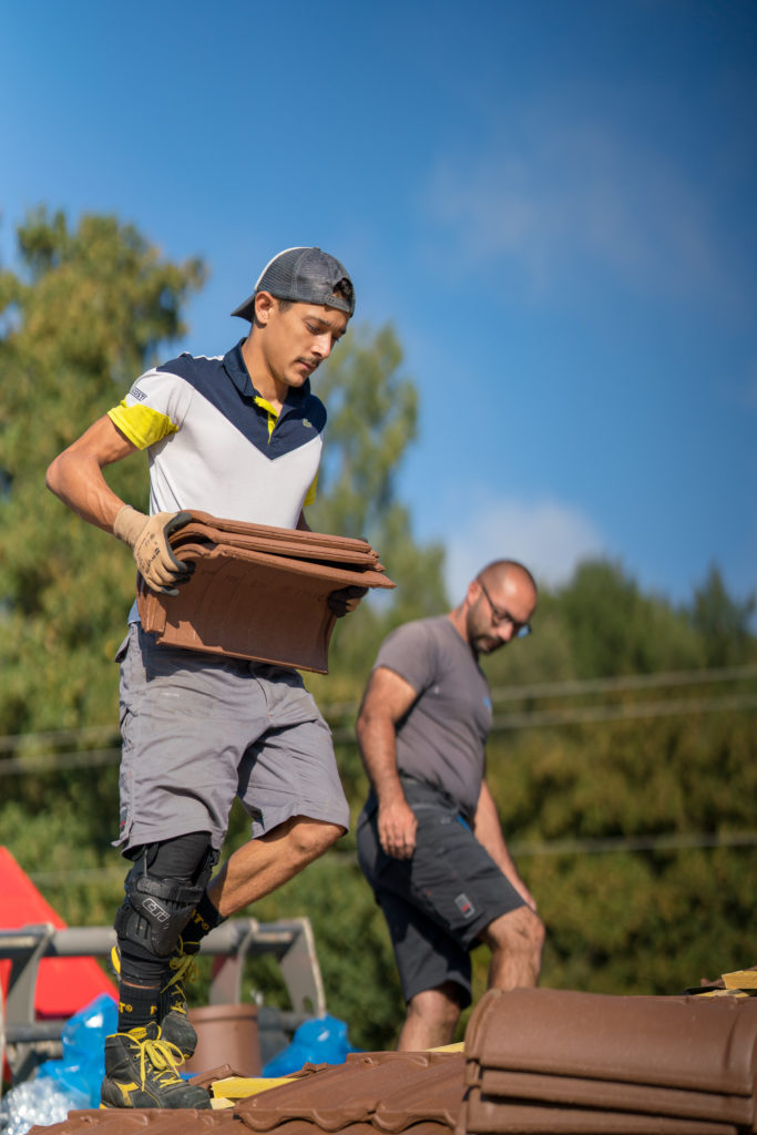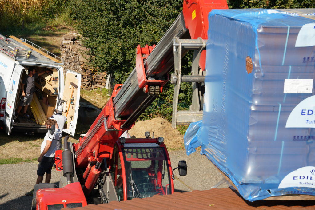 - Dépose des anciennes tuiles, mise à la benne pour le centre de tri et de recyclage des déchets