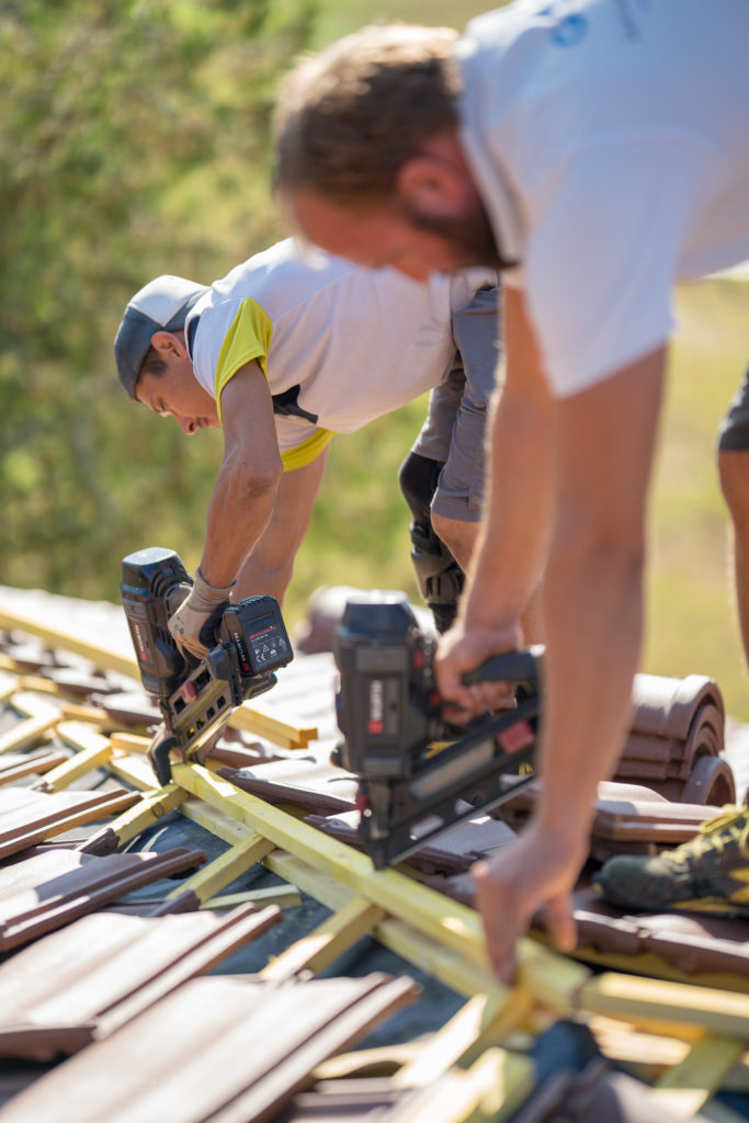 - Mise en place de l’écran sous toiture, également appelé pare pluie ; fixé à l’aide de contre latte en bois