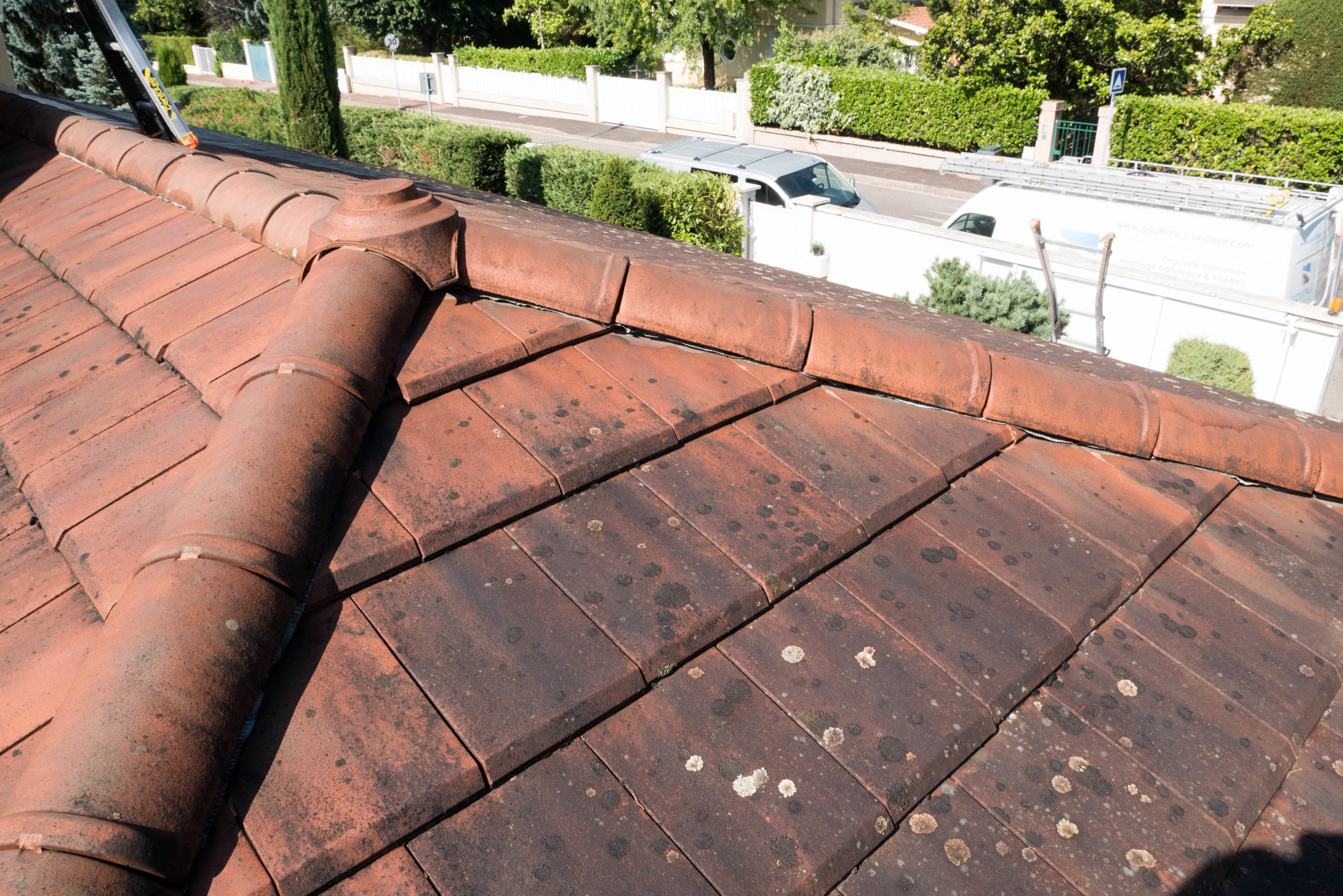 Au fil des années, les mousses et lichens se sont installés sur vos tuiles, les rendant ternes. Le traitement anti-mousse et le nettoyage moyenne pression nous permet de retrouver une tuile neutre. Nous pouvons ainsi appliquer un hydrofuge incolore ou coloré, afin de protéger en profondeur les tuiles des moisissures et de la pollution.